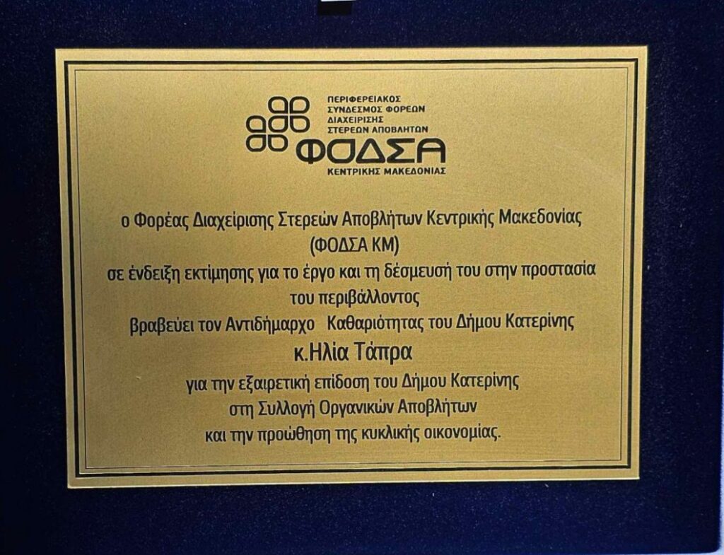 Όπως σημειώνει ο κος Τάπρας: «Το 2024 ο Δήμος Κατερίνης ήταν ο πρώτος δήμος στην ορθή διαχείριση οργανικών αποβλήτων στην Κεντρική Μακεδονία και μάλιστα βραβεύτηκε από τον Φορέα Διαχείρισης Στερεών Αποβλήτων Κεντρικής Μακεδονίας, για τις εξαιρετικές του επιδόσεις στον τομέα αυτό. Το 2025 καταφέραμε να πάμε ακόμη καλύτερα, διπλασιάζοντας τη συλλογή των οργανικών. Συγκεκριμένα, το 2024 συλλέξαμε 460 τόνους και φέτος ξεπεράσαμε τους 900, φτάνοντας συνολικά τους 1.500 τόνους μέσα σε δύο χρόνια. Ξεκινήσαμε ουσιαστικά από το μηδέν στη δική μας αντιδημαρχία και με την προτροπή και εμπιστοσύνη του Δημάρχου μας, με τη συνεργασία των δημοτών και των επιχειρήσεων, χτίσαμε βήμα – βήμα μια νέα νοοτροπία γύρω από τον καφέ κάδο. Εκεί που είχαμε έναν ή δύο κάδους, σήμερα σε πολλές επιχειρήσεις φτάσαμε να τοποθετούμε τρεις και τέσσερις, αποδεικνύοντας ότι, όταν ο κόσμος ενημερωθεί σωστά, συμμετέχει ενεργά».