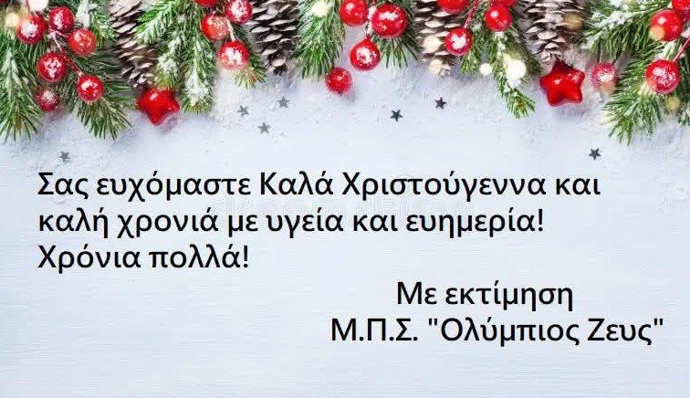 Ευχές Χριστουγέννων από Μ.Π.Σ. Δίου Όλυμπος ΖΕΥΣ