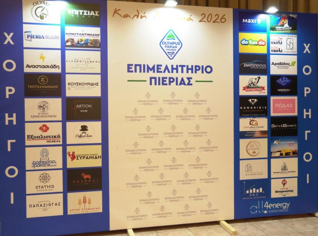 Εκ μέρους του Διοικητικού Συμβουλίου και όλων των μελών του Επιμελητηρίου Πιερίας, ευχαριστώ θερμά τους χορηγούς της ετήσιας εκδήλωσης της κοπής της βασιλόπιτας του Επιμελητηρίου, που πραγματοποιήθηκε την Κυριακή 25 Ιανουαρίου 2026.