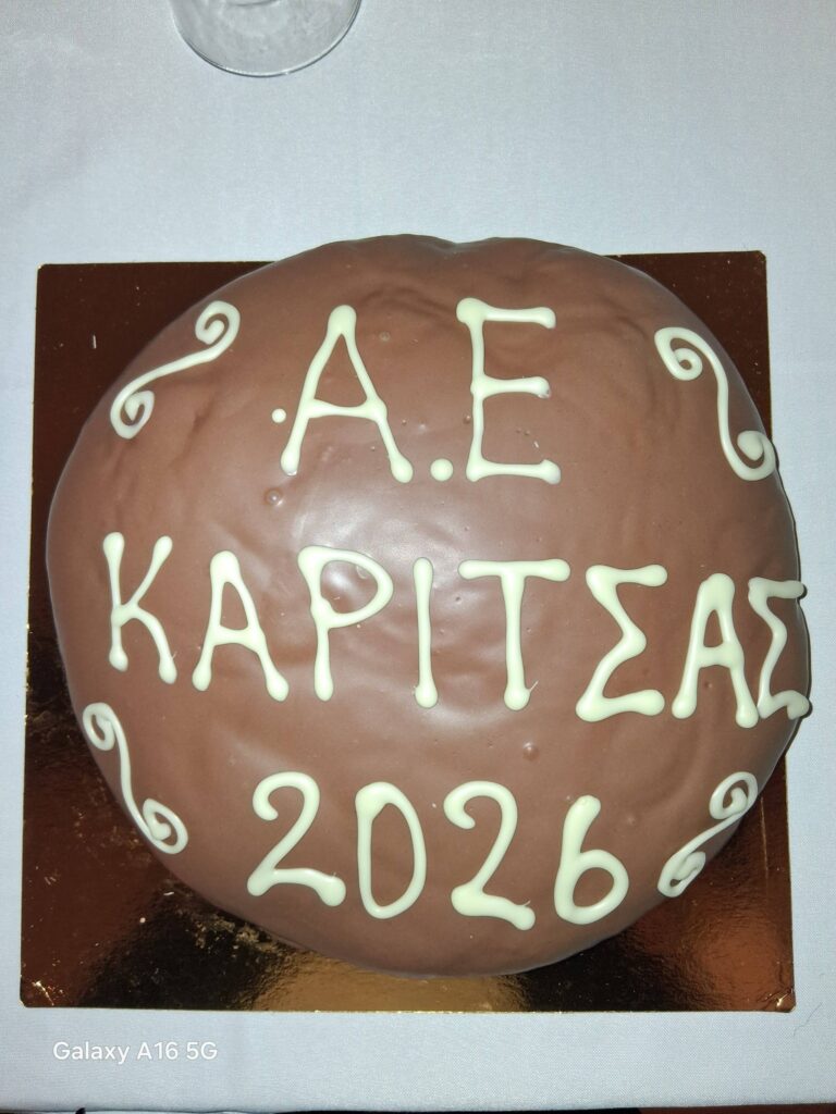 Σε οικογενειακό και ιδιαίτερα ευχάριστο κλίμα πραγματοποιήθηκε σήμερα, μετά το τέλος της προπόνησης, η κοπή της πρωτοχρονιάτικης πίτας της Αθλητικής Ένωσης Καρίτσας, στο εστιατόριο «Κόκκινος» στην Καρίτσα, παρουσία παικτών, τεχνικού επιτελείου και μελών της διοίκησης.