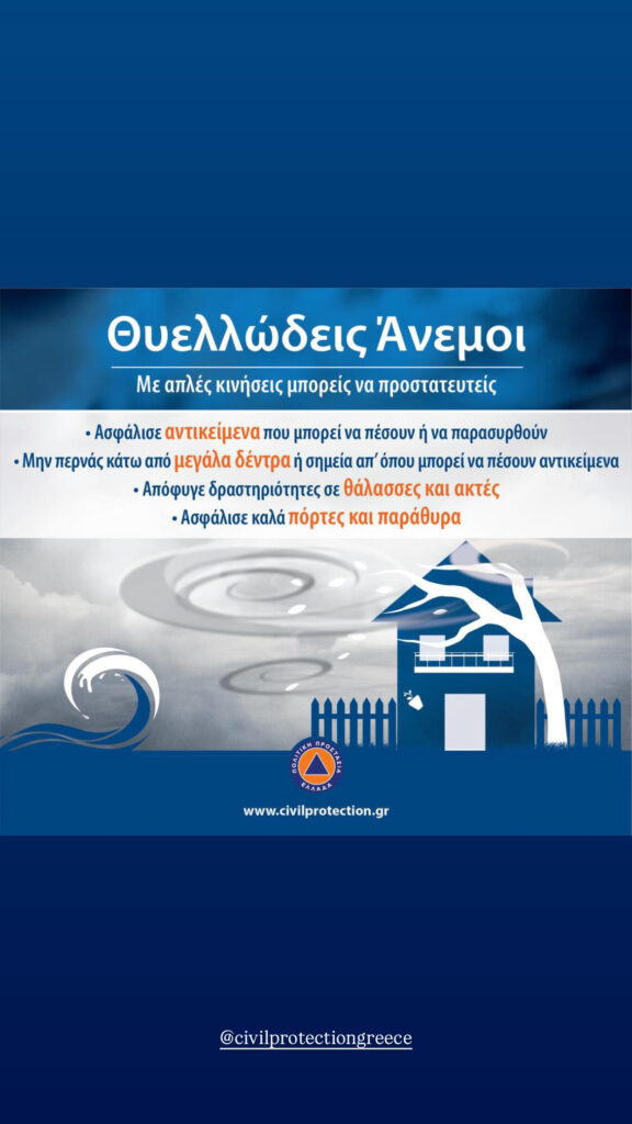 Για περισσότερες πληροφορίες και οδηγίες αυτοπροστασίας από τα έντονα καιρικά φαινόμενα, οι πολίτες μπορούν να επισκεφθούν την ιστοσελίδα της Γενικής Γραμματείας Πολιτικής Προστασίας στην ηλεκτρονική διεύθυνση civilprotection.gov.gr