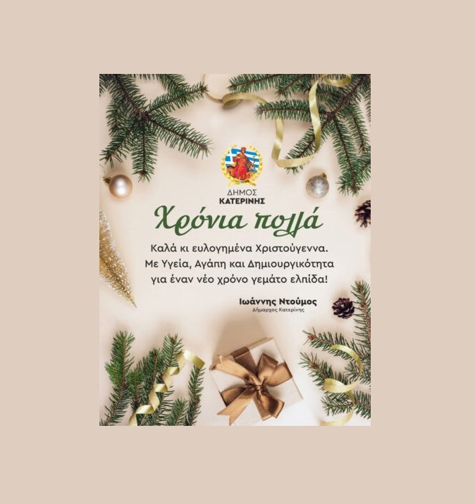 Μήνυμα & ευχές του Δημάρχου Κατερίνης Ιωάννη Ντούμου για τα Χριστούγεννα και το νέο έτος