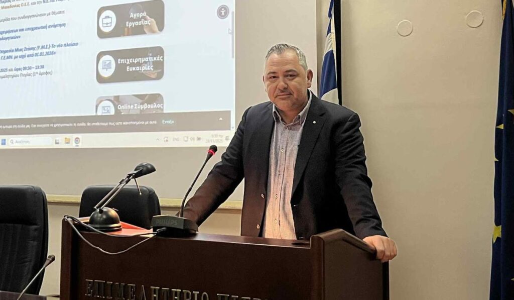 Την παρουσίαση πραγματοποίησε ο Απόστολος Κοκράνης, Αναπλ. Προϊστάμενος Υπηρεσίας Γ.Ε.ΜΗ. του Επιμελητηρίου Πιερίας.