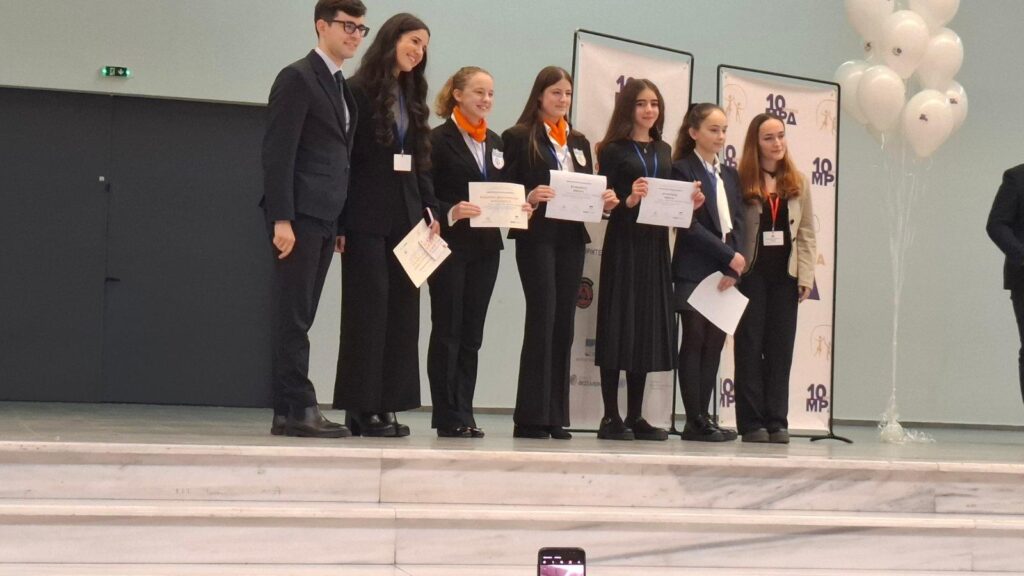 Στο τέλος του συνεδρίου, την Κυριακή 14-12-2025 στο συνεδριακό κέντρο “Ιωάννης Βελλίδης» (ΔΕΘ), ενώπιον μαθητών, εκπαιδευτικών και γονέων- για τους οποίους υπήρχε παράλληλο πρόγραμμα τις δύο πρώτες ημέρες- και με την παρουσία του υφυπουργού Παιδείας κ. Παπαϊωάννου, του Περιφερειακού Διευθυντή Εκπαίδευσης Κ. Μακεδονίας κ. Κόπτση και άλλων εκλεκτών προσκεκλημένων απονεμήθηκαν βεβαιώσεις συμμετοχής σε όλους τους μαθητές και τους συνοδούς εκπαιδευτικούς, καθώς και τιμητικά βραβεία σε εμπειρογνώμονες που ξεχώρισαν για τη συμμετοχή και την απόδοσή τους. Η διοργάνωση υλοποιήθηκε από τον σύλλογο «ΡΟΗ», με εκπαιδευτικό, κοινωνικό και φιλανθρωπικό χαρακτήρα. Οι μαθήτριες σε ρόλο Διπλωμάτη του σχολείου μας ήταν οι Μαρία Γώγου, Φανή Ζαπούνογλου, Μαρία Μποταΐτη Άννα Ντολαπτσή και Ευγενία Χαρέλα από τη Β΄ τάξη, Χριστίνα Κοταγιάννη, Κωνσταντίνα –Γκρισέλντα Ντρελάλαϊ και Γκρεσίλντα Σόρρα από την Α΄ τάξη, με την καθοδήγηση της Διευθύντριας του σχολείου Δρος Ξανθίππης Καραβίδα. Μάλιστα η μαθήτρια Κωνσταντίνα –Γκρισέλντα Ντρελάλαϊ τιμήθηκε με εύφημο μνεία. Αξίζουν σε όλες θερμά συγχαρητήρια!