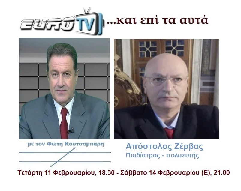 Δείτε την Τετάρτη 11 Φεβρουαρίου, στις 6.30 μ.μ. και σε επανάληψη το Σάββατο 14 Φεβρουαρίου, στις 9 μ.μ., την εκπομπή …και επί τα αυτά, στο EURO CHANNEL. Καλεσμένος ο παιδίατρος Απόστολος Ζέρβας