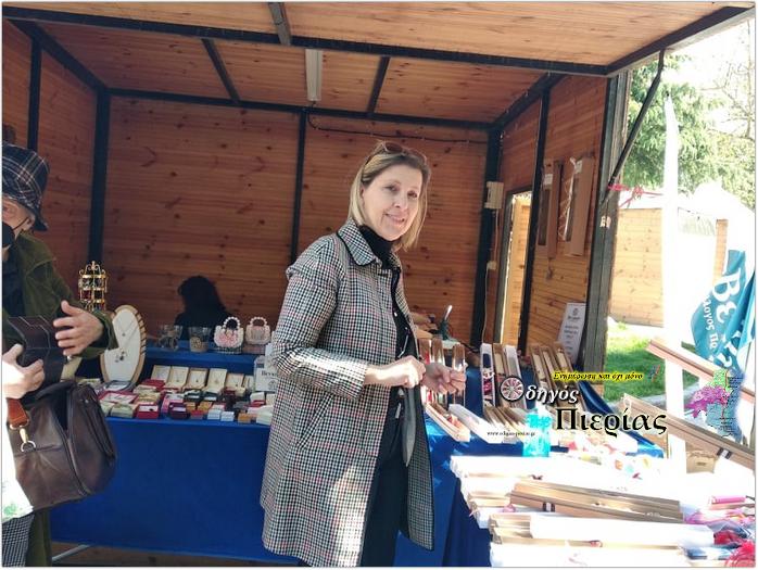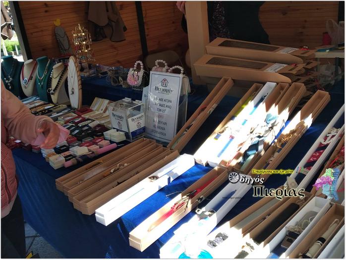Χειροποίητες πασχαλινές λαμπάδες, χειροποίητα κοσμήματα και διάφορα είδη δώρων κοσμούν το περίπτερο, τα οποία ετοίμασαν με ιδιαίτερη αγάπη τα μέλη του συλλόγου.