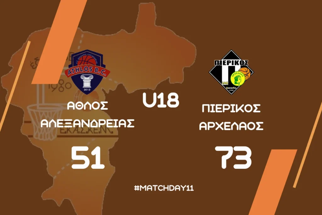 Ο Πιερικός Αρχέλαος επικράτησε με 51-73 του Άθλου Αλεξάνδρειας, στο Κλειστό Γυμναστήριο του 2ου Γυμνασίου Αλεξάνδρειας, σε αγώνα για την 1η αγωνιστική του α’ ομίλου της β’ φάσης του πρωταθλήματος εφήβων της ΕΚΑΣΚΕΜ.