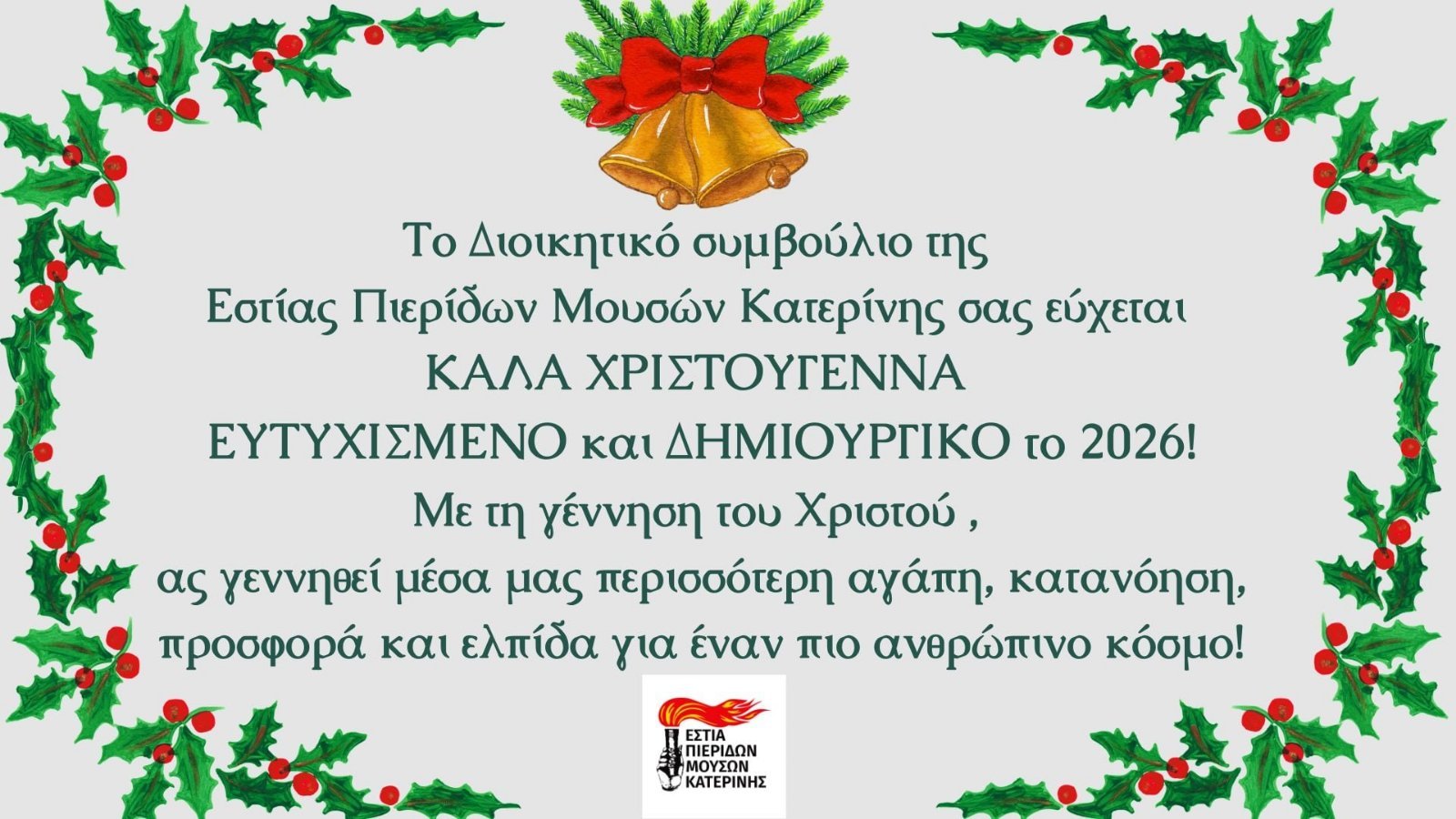 Ευχές από τον Σύλλογο Καρκινοπαθών Πιερίας για Καλά Χριστούγεννα και για το Νέο Έτος 2026!