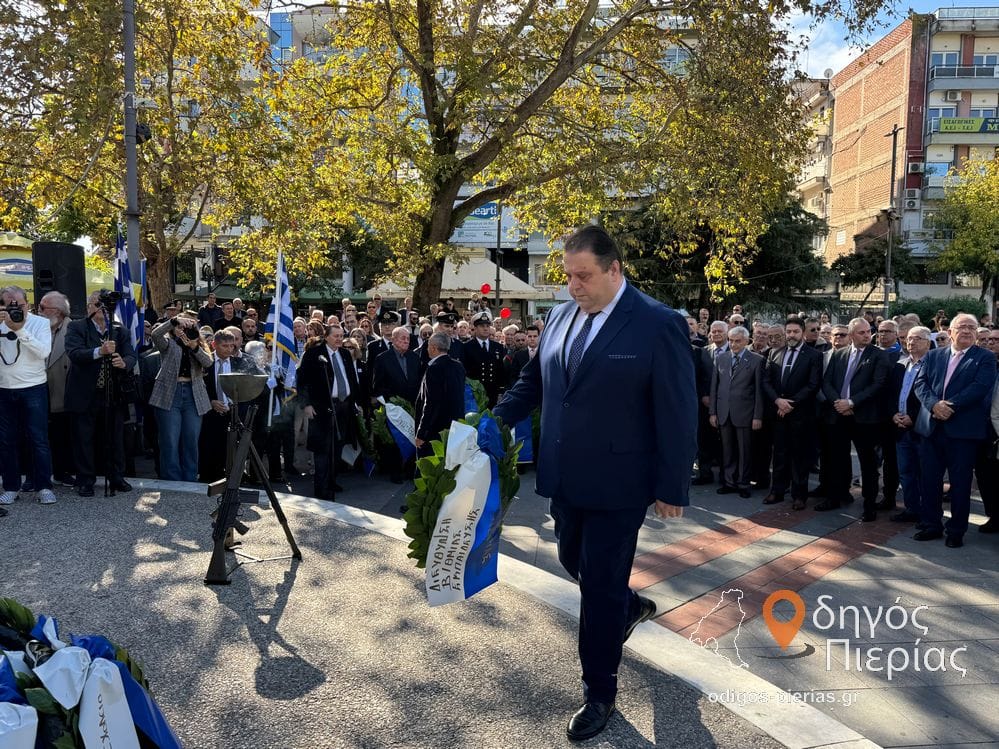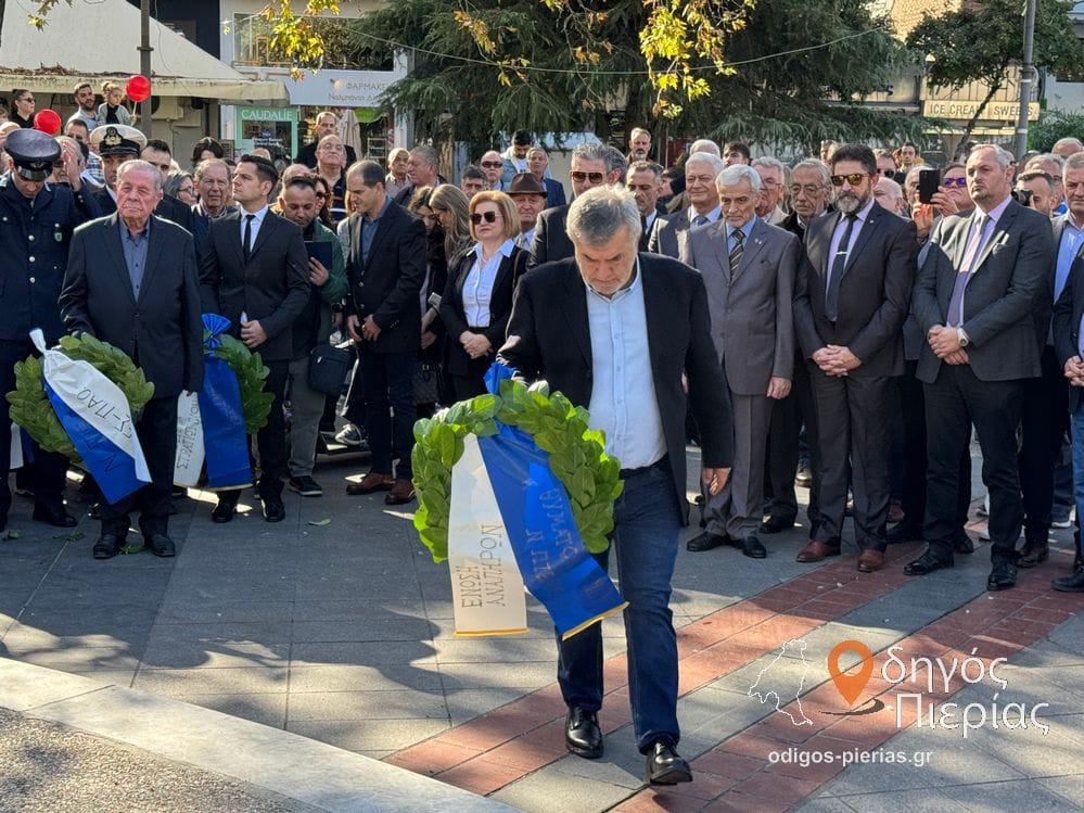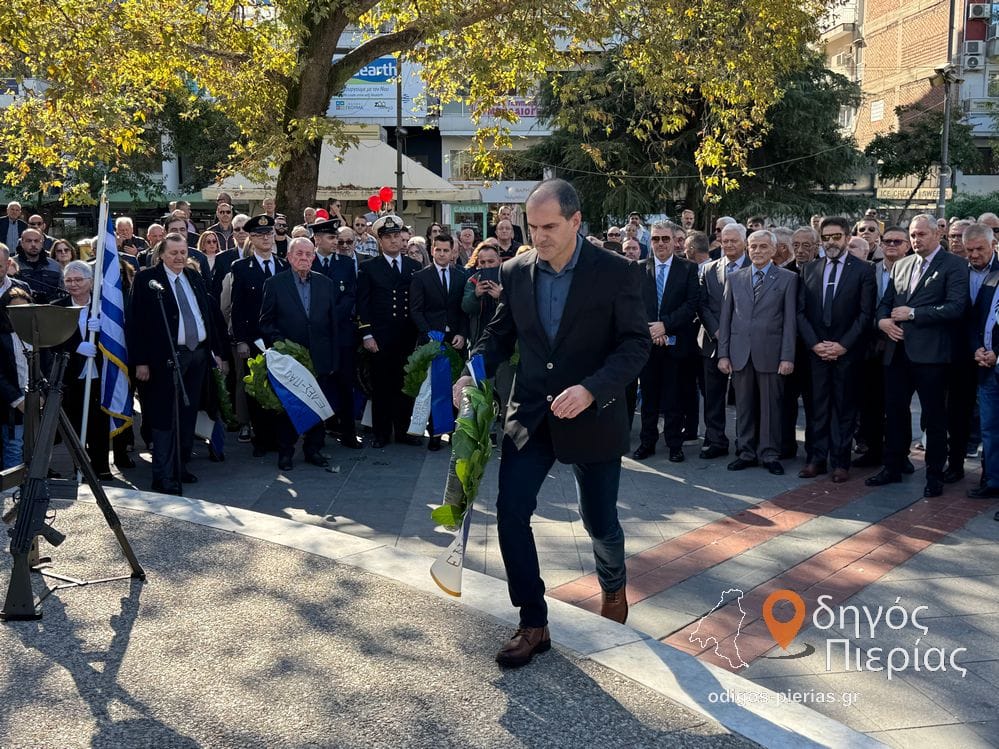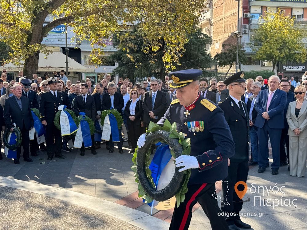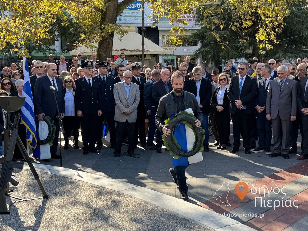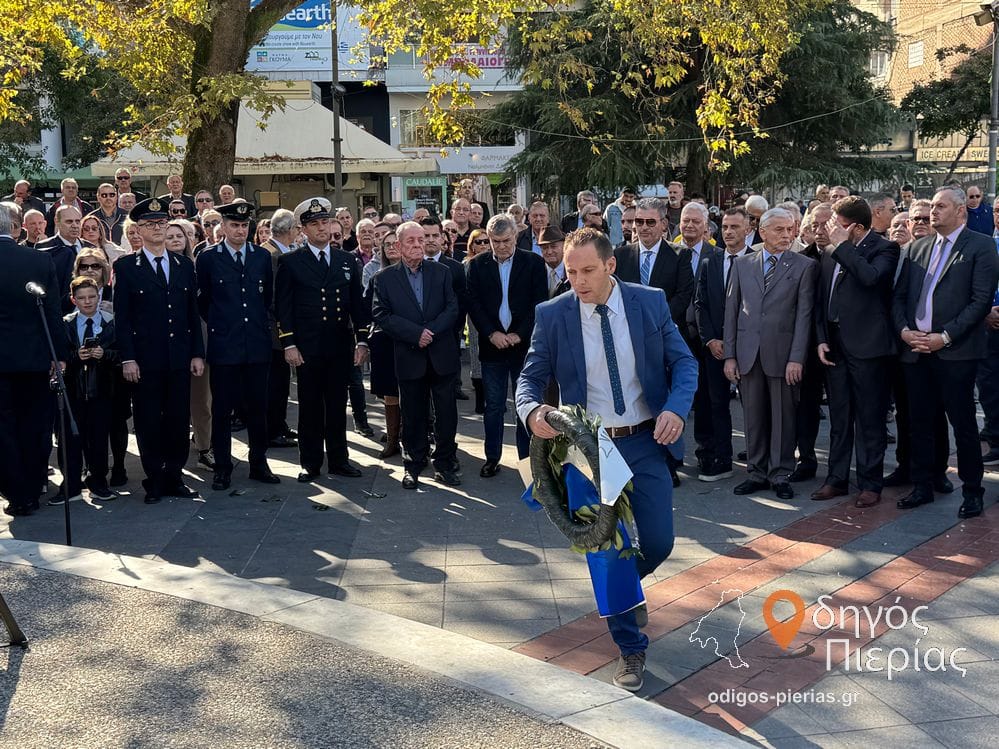 Στην τελετή συμμετείχαν ο Εκπρόσωπος της Κυβέρνησης, ο Εκπρόσωπος της Βουλής των Ελλήνων, η Αντιπεριφερειάρχης Πιερίας, ο Δήμαρχος Κατερίνης, ο Ανώτερος Διοικητής Φρουράς Π.Ε. Πιερίας και Διοικητής της XXIV Τεθωρακισμένης Ταξιαρχίας, ο Αστυνομικός Διευθυντής Πιερίας, ο Διοικητής Πυροσβεστικών Υπηρεσιών Π.Ε. Πιερίας, ο Λιμενάρχης Σκάλας Κατερίνης, η Διευθύντρια Πρωτοβάθμιας Εκπαίδευσης Πιερίας, ο Διευθυντής Δευτεροβάθμιας Εκπαίδευσης Πιερίας, καθώς και εκπρόσωποι στρατιωτικών, αποστράτων, εφεδρειών, αναπήρων και θυμάτων πολέμου, Εφεδροπολεμιστικών Οργανώσεων, Οργανώσεων Εθνικής Αντίστασης και πολιτικών κομμάτων.