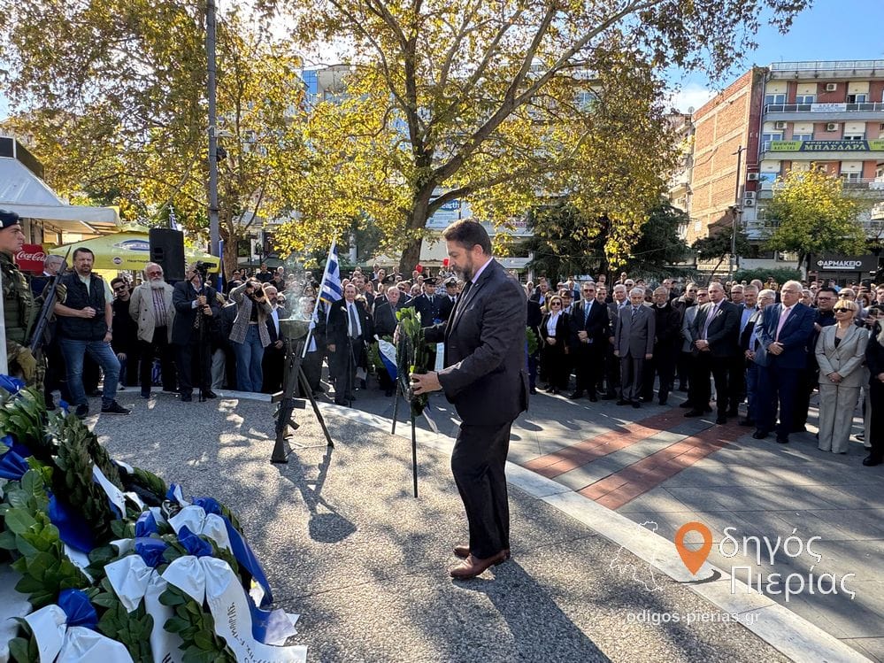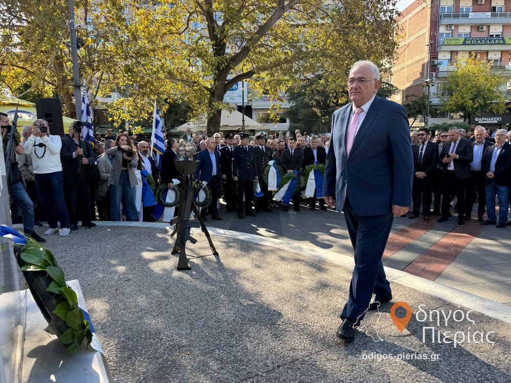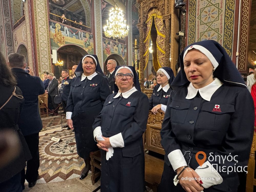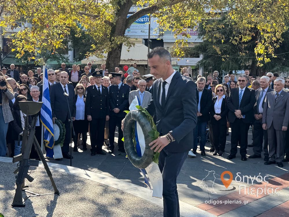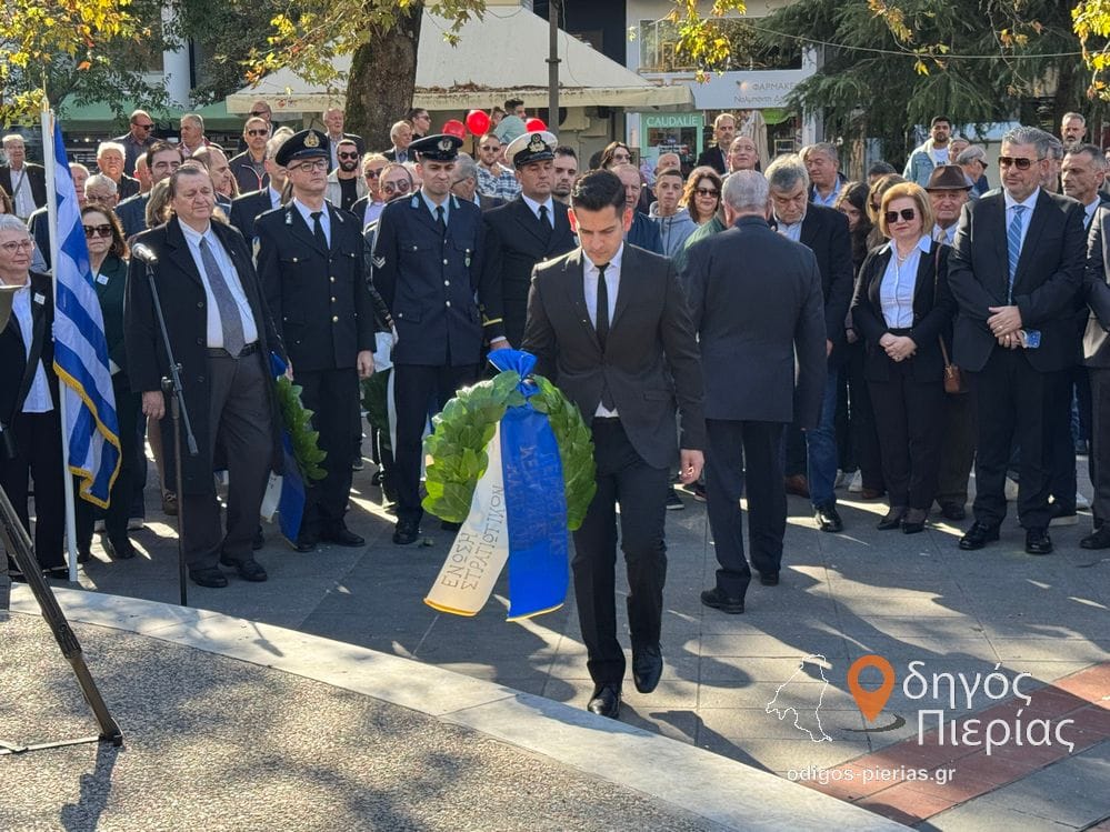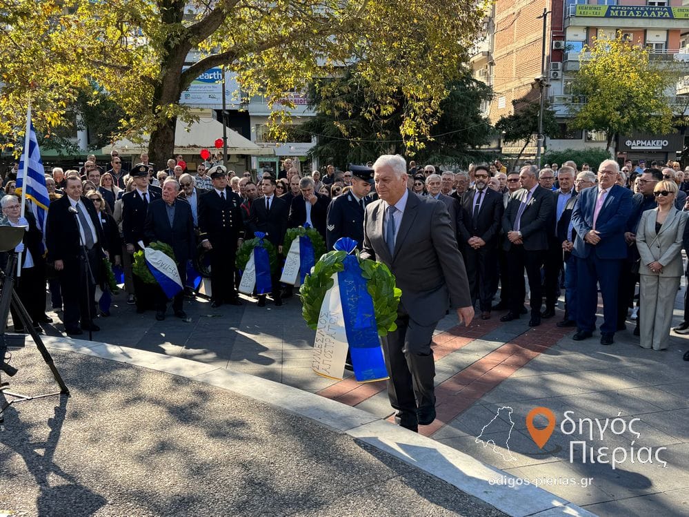 Στην τελετή συμμετείχαν ο Εκπρόσωπος της Κυβέρνησης, ο Εκπρόσωπος της Βουλής των Ελλήνων, η Αντιπεριφερειάρχης Πιερίας, ο Δήμαρχος Κατερίνης, ο Ανώτερος Διοικητής Φρουράς Π.Ε. Πιερίας και Διοικητής της XXIV Τεθωρακισμένης Ταξιαρχίας, ο Αστυνομικός Διευθυντής Πιερίας, ο Διοικητής Πυροσβεστικών Υπηρεσιών Π.Ε. Πιερίας, ο Λιμενάρχης Σκάλας Κατερίνης, η Διευθύντρια Πρωτοβάθμιας Εκπαίδευσης Πιερίας, ο Διευθυντής Δευτεροβάθμιας Εκπαίδευσης Πιερίας, καθώς και εκπρόσωποι στρατιωτικών, αποστράτων, εφεδρειών, αναπήρων και θυμάτων πολέμου, Εφεδροπολεμιστικών Οργανώσεων, Οργανώσεων Εθνικής Αντίστασης και πολιτικών κομμάτων.