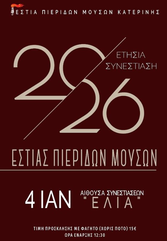 Θα ήταν ιδιαίτερη τιμή και χαρά για μας να παρευρεθείτε στην ετήσια συνεστίαση -κοπή βασιλόπιτας της Ε.Π.Μ., που θα πραγματοποιηθεί την Κυριακή, 4 Ιανουαρίου 2026