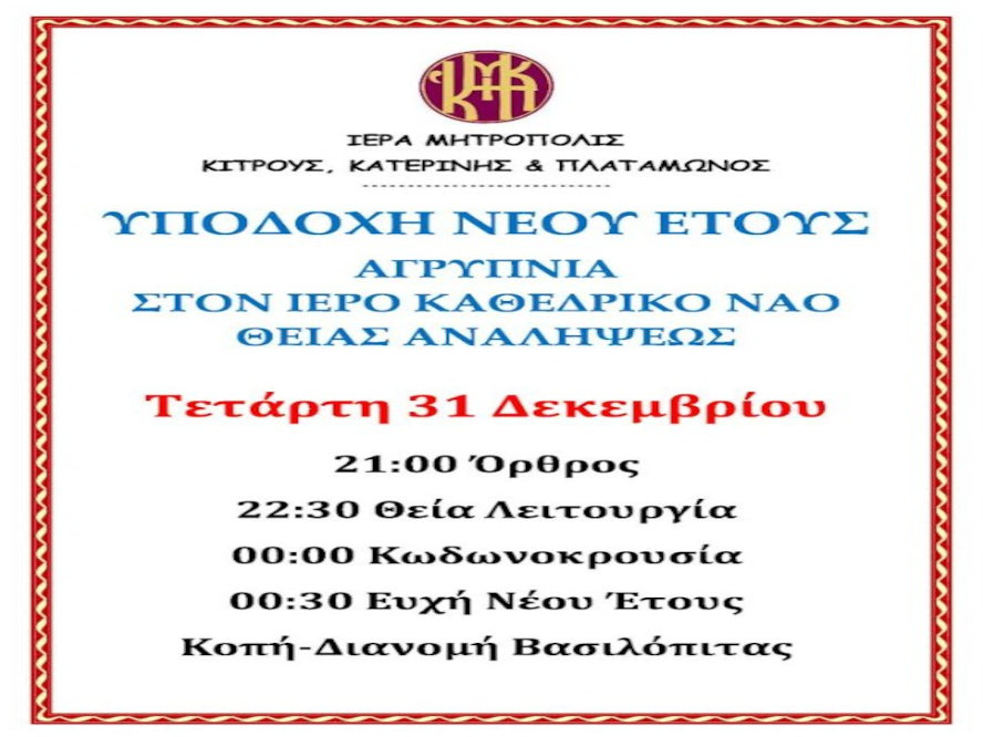 Υποδοχή νέου Έτους στην Ιερά Μητρόπολη Κίτρους, Κατερίνης και Πλαταμώνος