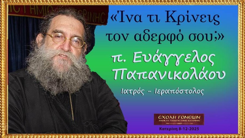«Ίνα τι Κρίνεις τον αδερφό σου;» το θέμα της ομιλίας του πολυσέβαστου μας Ιατρού – Ιεραποστόλου π. Ευάγγελου Παπανικολάου την Δευτέρα 8 Δεκεμβρίου 2025 στίς 19:00 στην Σχολή Γονέων –