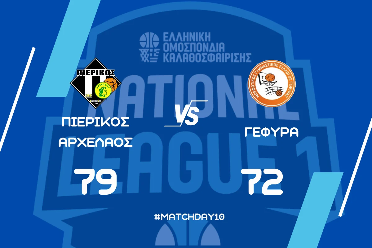 Ο Πιερικός Αρχέλαος επικράτησε 79-72 με της Γέφυρας, στο Κλειστό Γυμναστήριο Σιδηροδρομικού Σταθμού Κατερίνης, σε αγώνα για τη 10η αγωνιστική του 3ου ομίλου της National