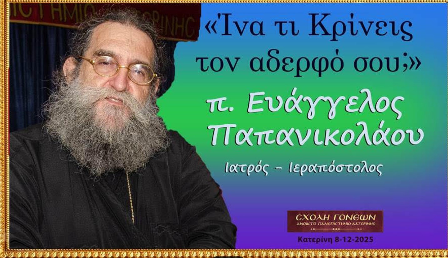 «Ίνα τι Κρίνεις τον αδερφό σου;» το θέμα της ομιλίας του πολυσέβαστου μας Ιατρού – Ιεραποστόλου π. Ευάγγελου Παπανικολάου την Δευτέρα 8 Δεκεμβρίου 2025 στίς 19:00 στην Σχολή Γονέων –