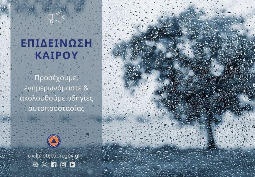 Η Γενική Γραμματεία Πολιτικής Προστασίας (civilprotection.gov.gr) του Υπουργείου Κλιματικής Κρίσης & Πολιτικής Προστασίας συνιστά στους πολίτες να είναι ιδιαίτερα προσεκτικοί, μεριμνώντας για τη λήψη μέτρων