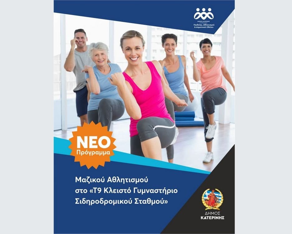 Νέο Πρόγραμμα Μαζικού Αθλητισμού στον Δήμο Κατερίνης στο «Τ9 Κλειστό Γυμναστήριο Σιδηροδρομικού Σταθμού» Η Αντιδημαρχία Παιδείας, Αθλητισμού & Δημοτικού Ωδείου του Δήμου Κατερίνης, μέσω του