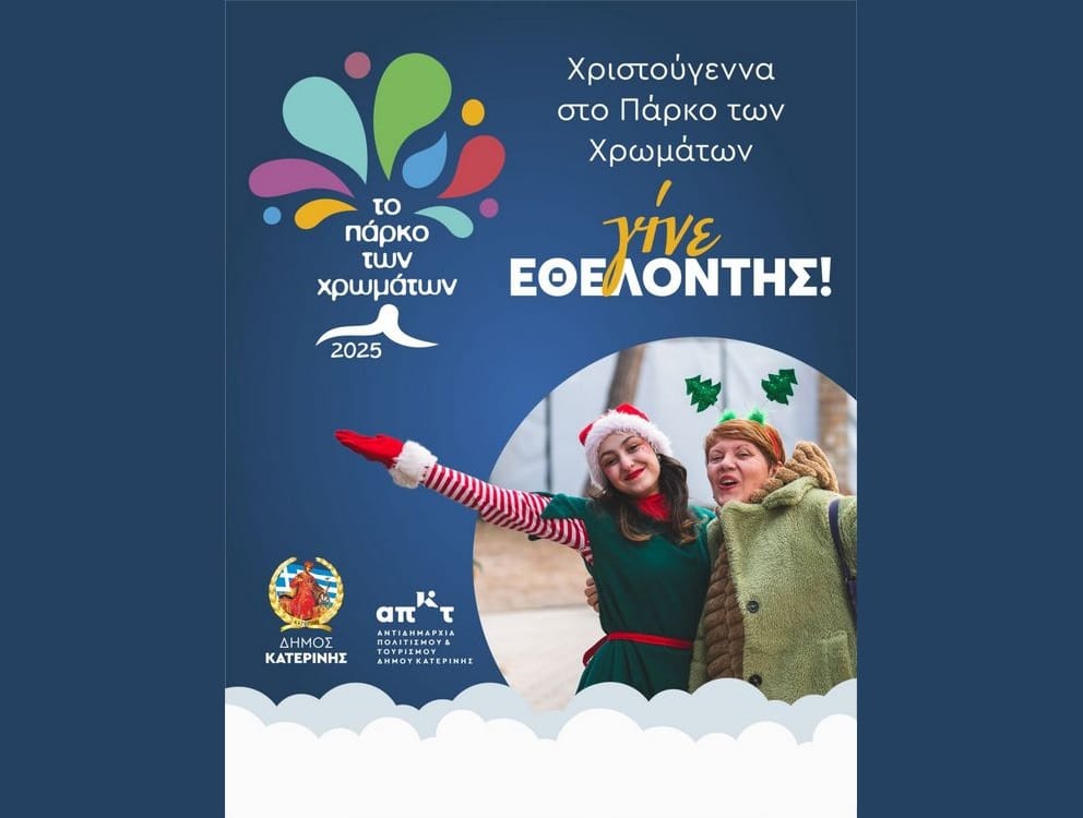 Το Χριστουγεννιάτικο θεματικό Πάρκο των Χρωμάτων του Δήμου Κατερίνης, σε προσκαλεί να γίνεις δημιουργικό μέλος της ομάδας του. Εάν είσαι άνω των 18 ετών και