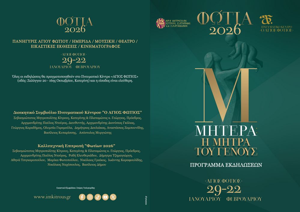 Η Ιερά Μητρόπολη Κίτρους, Κατερίνης και Πλαταμώνος διοργανώνει και φέτος τον καθιερωμένο πολιτιστικό και πνευματικό θεσμό «Φώτια», έναν θεσμό που αποτελεί διαχρονικό σημείο αναφοράς για