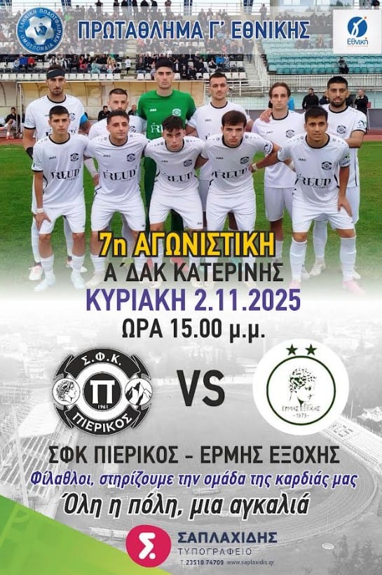 Την τέταρτη νίκη του στο πρωτάθλημα της Α’ κατηγορίας της ΕΠΣ Πιερίας και μάλιστα με το ίδιο σκόρ (2 – 1) πέτυχε ο Αιγινιακός επί