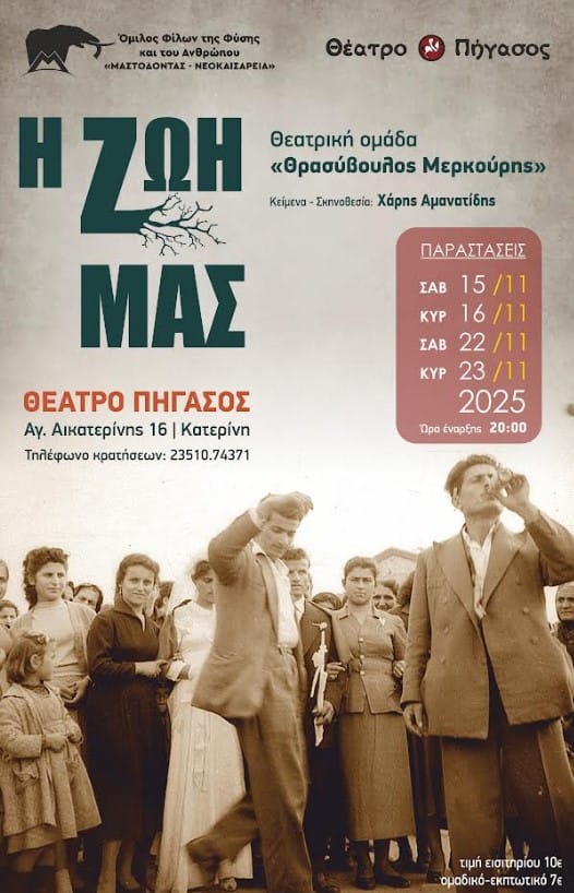 «ΜΑΣΤΟΔΟΝΤΑΣ – ΝΕΟΚΑΙΣΑΡΕΙΑ» Η Θεατρική Ομάδα «Θρασύβουλος Μερκούρης» παρουσιάζει την πολυαναμενόμενη παράσταση «Η ΖΩΗ ΜΑΣ», ένα έργο που αποτελεί φόρο τιμής στην ιστορία και την ταυτότητα