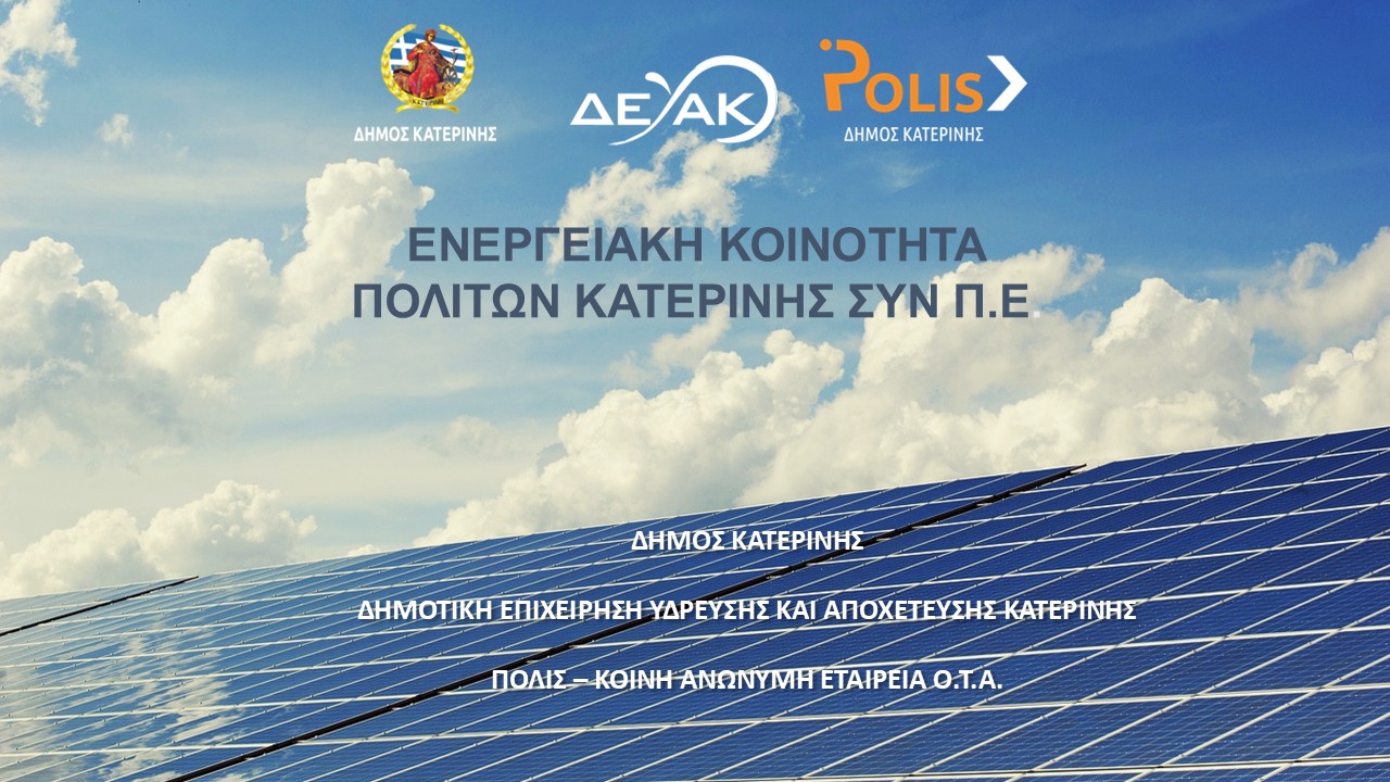 Στρατηγικό βήμα για τη μετάβαση του Δήμου Κατερίνης σε ένα νέο ενεργειακό μοντέλο Συστήνεται Ενεργειακή Κοινότητα με τη συμμετοχή του Δήμου Κατερίνης, της ΔΕΥΑΚ και