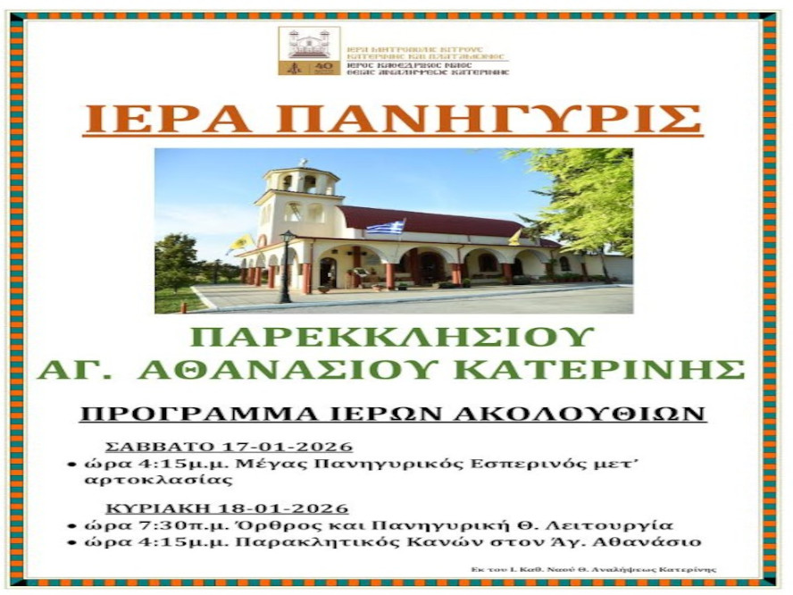 Κοπή Βασιλόπιτας της Έκτακτης Γεν. Συνέλευσης που θα πραγματοποιηθεί την Κυριακή 18 Ιανουαρίου 2026 και ώρα 18:30 μ.μ. στην Αίθουσα της ΘΡΑΚΙΚΗΣ ΕΣΤΙΑΣ ΚΑΤΕΡΙΝΗΣ. Σας περιμένουμε όλους, σε γιορτινό κλίμα, να ανταλλάξουμε ευχές για