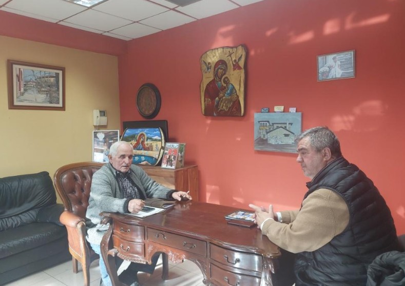 Ο πρώην αγροτοσυνδικαλιστής από τη Βροντού Θωμάς Παπανικολάου, σήμερα το πρωί σε συζήτηση για τα αγροτικά μπλόκα με τον πρώην περιφερειακό σύμβουλο, δικηγόρο Νίκο Παπανικολάου.
