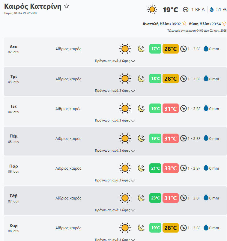 Δευτέρα 2 Ιουνίου o καιρός στην Πιερία. Δείτε τι καιρό θα κάνει το επόμενη εβδομάδα
