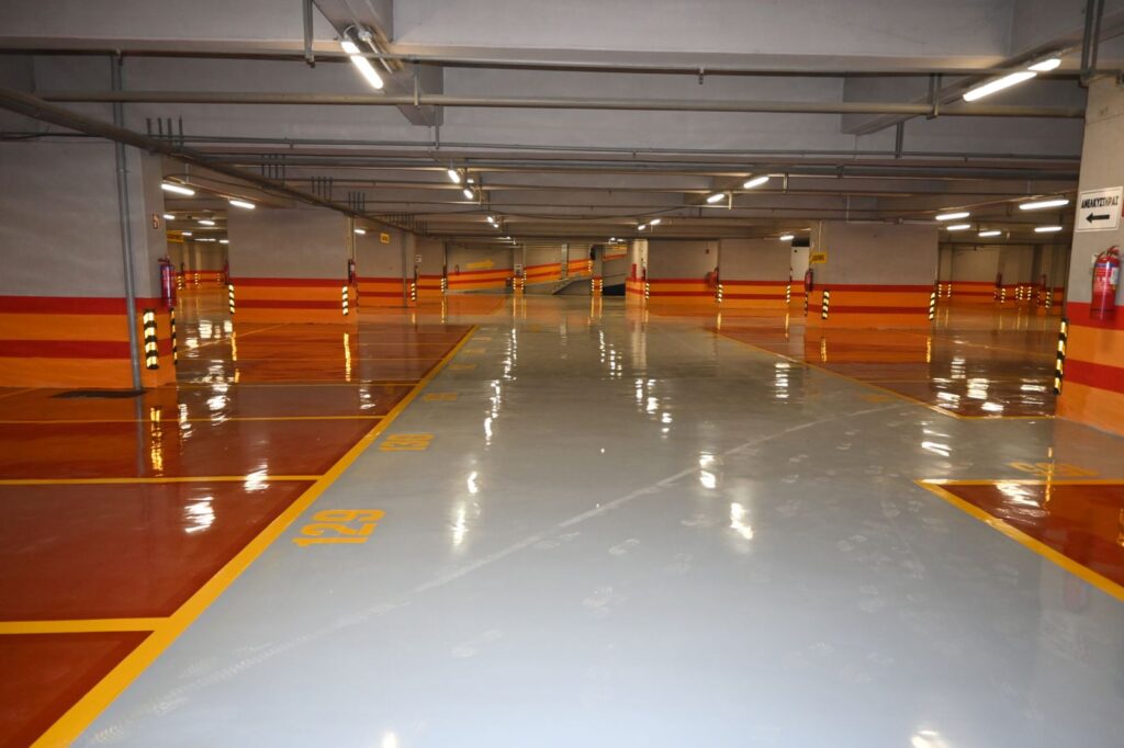 Στον σχεδιασμό αναβάθμισης των δημοτικών χώρων στάθμευσης, στην αισθητική και ασφάλεια των υποδομών που καθημερινά χρησιμοποιούν κάτοικοι και επισκέπτες εντάσσονται οι εργασίες κατασκευής εποξειδικού δαπέδου και εσωτερικής διαγράμμισης με εποξειδική βαφή, στο β’ υπόγειο του δημοτικού πάρκινγκ P2, στην πλατεία Δημαρχείου.