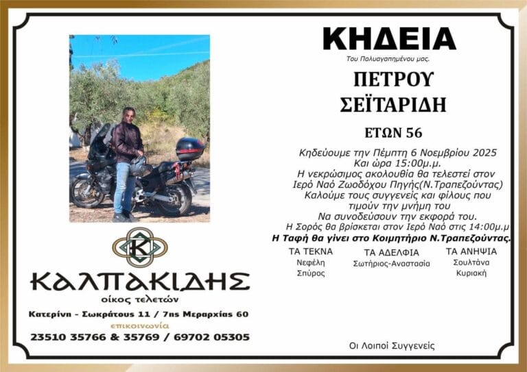 Με βαθιά θλίψη ανακοινώνουμε ότι έφυγε από τη ζωή ο Πέτρος Σεϊταρίδης,