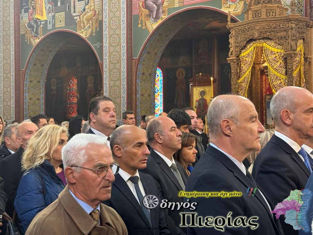 Τη Δοξολογία στον Ιερό Ναό χοροστάτησε ο Μητροπολίτης Κίτρους, Κατερίνης και Πλαταμώνος, κ. Γεώργιος, ο οποίος σημείωσε ότι η σημερινή ημέρα είναι ιδιαίτερα σημαντική για την πόλη της Κατερίνης. Στη θεία λειτουργία παρέστη και ο Αρχιεπίσκοπος Κρήτης, κ. Ευγένιος, ενώ συμμετείχαν πλήθος ιερέων από την περιοχή της Κατερίνης.