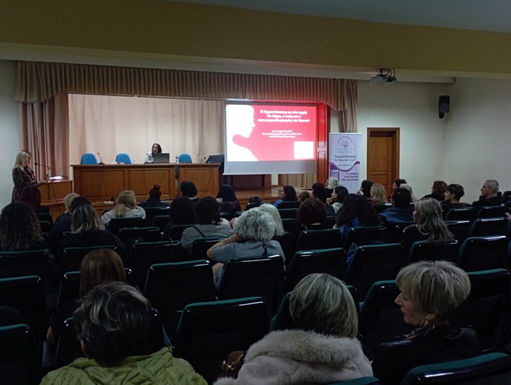 Με επιτυχία πραγματοποιήθηκε η ενημερωτική εκδήλωση της Ε.Λ.Ε.Τ.Ε.Μ Παράρτημα Πιερίας με θέμα: «Η Εμμηνόπαυση ως νέα αρχή – Το σώμα, ο νους και ο επαναπροσδιορισμός του εαυτού» παρουσία πολλών γυναικών , αποδεικνύοντας το ενδιαφέρον για την συνολική προσέγγιση της φυσικής φάσης της ζωής.