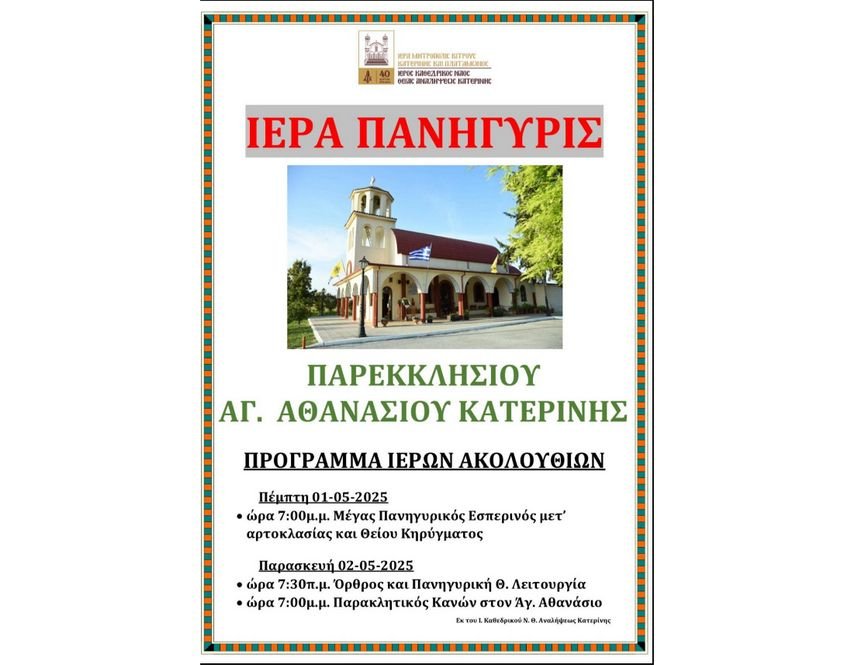 Ιερά Πανήγυρις Ιερού Παρεκκλησίου Αγίου Αθανασίου Κατερίνης