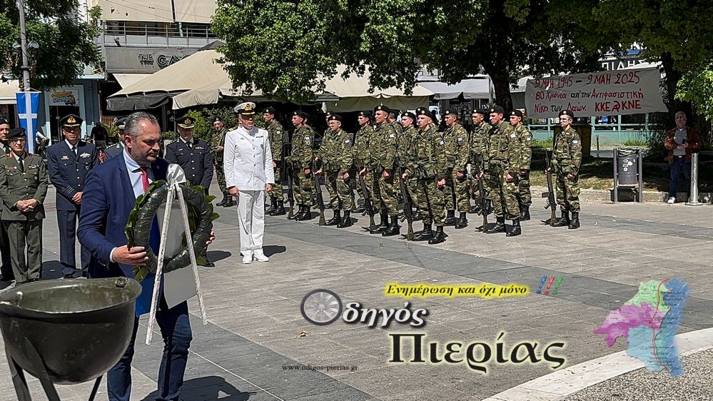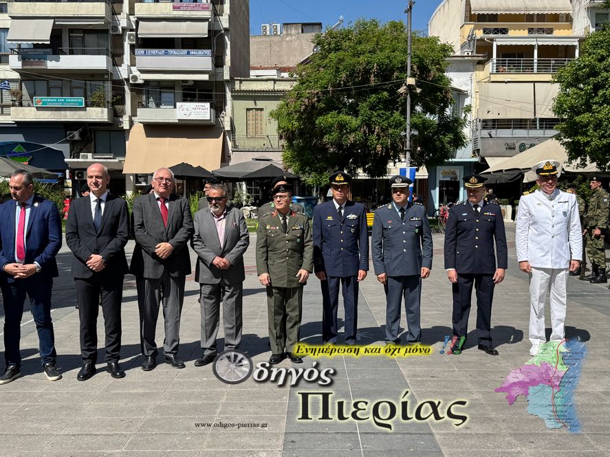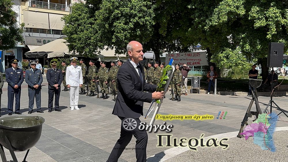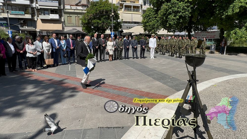 Με επιμνημόσυνη δέηση και κατάθεση στεφάνων στο χώρο του Μνημείου της Πλατείας Ελευθερίας στην Κατερίνη, τιμήθηκε σήμερα, Παρασκευή 9 Μαΐου, η Ημέρα Μνήμης για τη Λήξη του Β’ Παγκοσμίου Πολέμου.