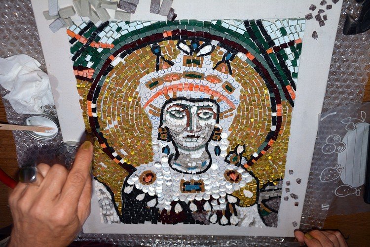 Στην αναβαθμισμένη εμποροπανήγυρη του Δήμου Κατερίνης η Ιερά Μητρόπολη Κατερίνης, Κίτρους και Πλαταμώνος και το Κέντρο Γραμμάτων και Τεχνών Δίου πραγματοποιήσαν την Τρίτη 27 Αυγούστου τη δράση επίδειξης της τέχνης του ψηφιδωτού.
