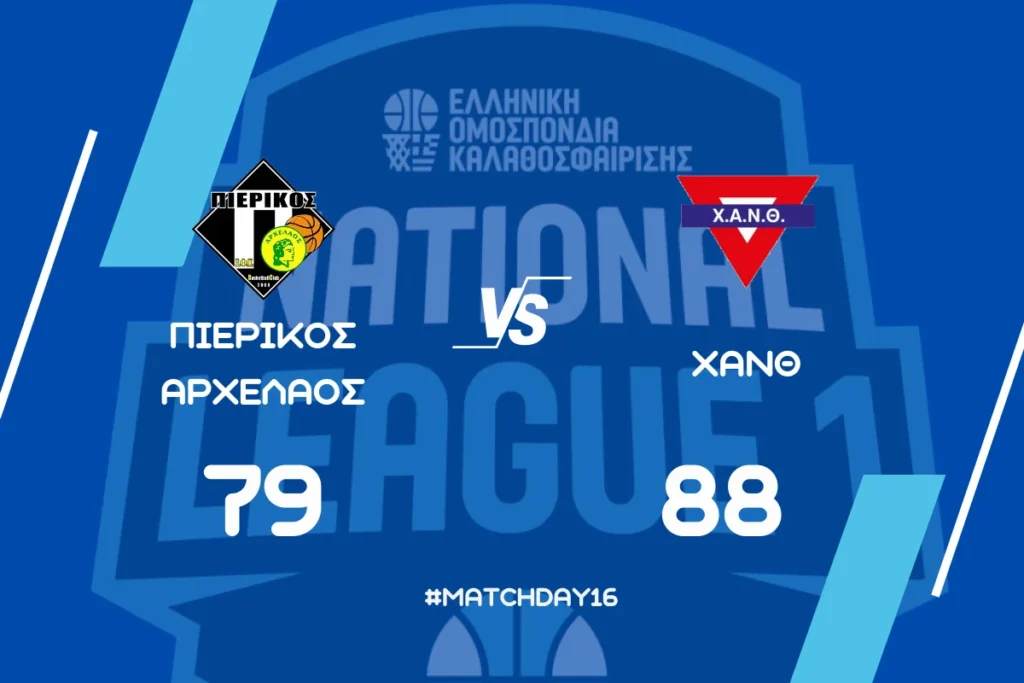 Ο Πιερικός Αρχέλαος ηττήθηκε από τη ΧΑΝΘ με 79-88 στο Κλειστό Γυμναστήριο Σιδηροδρομικού Σταθμού Κατερίνης σε αγώνα για την 16η αγωνιστική του 3ου ομίλου της National League 1.