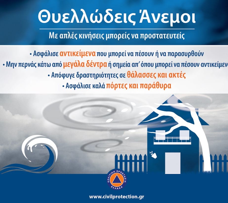 Για περισσότερες πληροφορίες και οδηγίες αυτοπροστασίας από τα έντονα καιρικά φαινόμενα, οι πολίτες μπορούν να επισκεφθούν την ιστοσελίδα του Υπουργείου Κλιματικής Κρίσης και Πολιτικής Προστασίας στην ηλεκτρονική διεύθυνση civilprotection.gov.gr