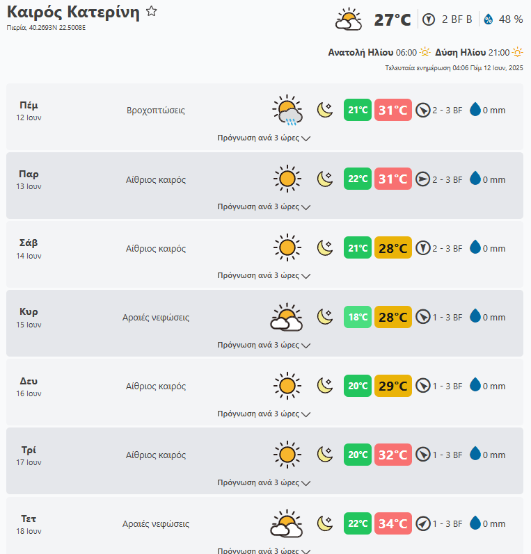 Πέμπτη 12 Ιουνίου o καιρός στην Πιερία. Δείτε τι καιρό θα κάνει το επόμενη εβδομάδα