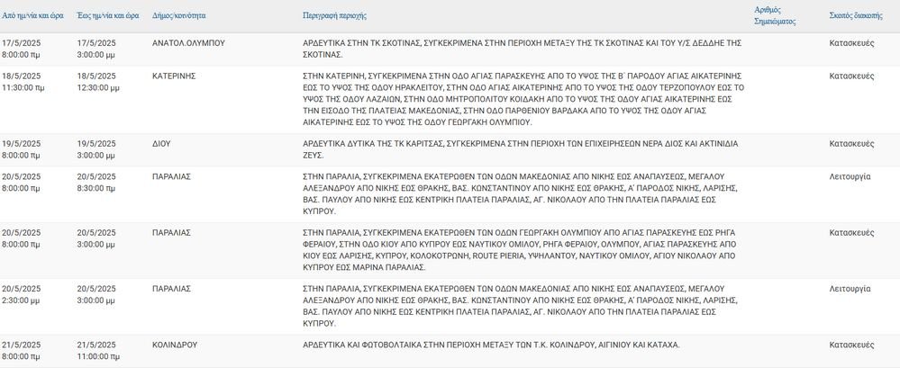 Προγραμματισμένη διακοπή ρεύματος σε περιοχές της Πιερίας – Δείτε που