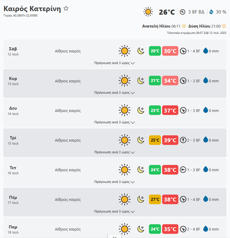 Ο καιρός στην Πιερία Πρόγνωση καιρού για την επόμενη εβδομάδα: Τετάρτη 24 έως και Τρίτη 30 – 12– 2025.