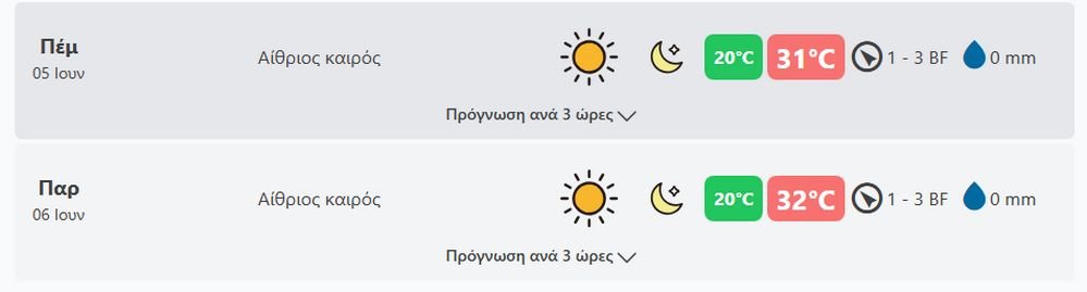 Πρόγνωση καιρού για την επόμενη εβδομάδα: Σάββατο 31 έως και Παρασκευή 06 – 06– 2025.