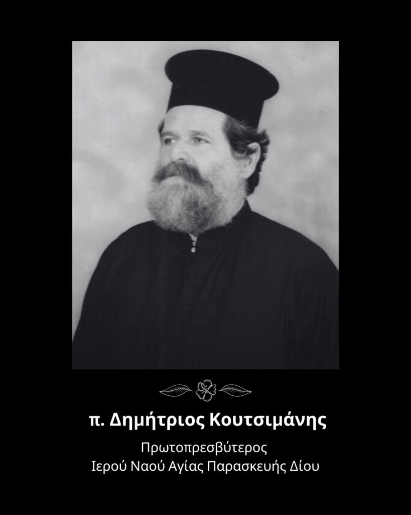 Έφυγε από κοντά μας ο παπα-Δημήτρης Κουτσιμάνης και ο Δήμος μας θρηνεί για τον αδόκητο θάνατο του σεβαστού μας πατέρα, Πρωτοπρεσβύτερου του Ιερού Ναού Αγίας Παρασκευής Δίου.