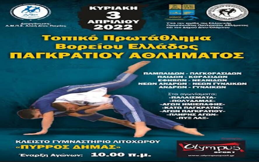 Αγώνες Παγκρατίου Βορείου Ελλάδος – Πρωτάθλημα Οι αγώνες πραγματοποιήθηκαν την Κυριακή 3/4/2022 στο κλειστό γυμναστήριο Λιτοχώρου «Πύρος Δήμας» με διοργανωτές την Ελληνική Ομοσπονδία Παγκρατίου Αθλήματος.