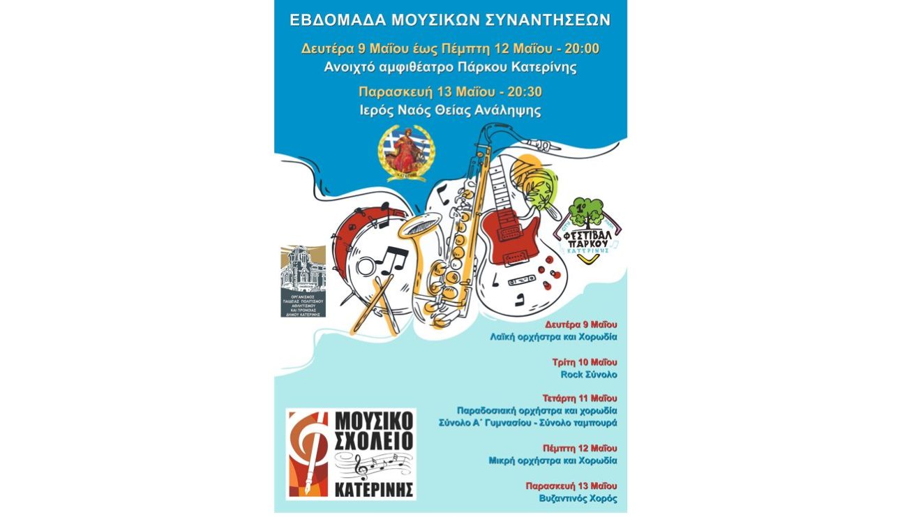 Παραδοσιακής μουσικής από το Μουσικό Σχολείο Κατερίνης Στις 20:00 στο ανοιχτό αμφιθέατρο του Πάρκου Κατερίνης το Μουσικό Σχολείο Κατερίνης πραγματοποιεί μεγάλη συναυλία παραδοσιακής μουσικής.