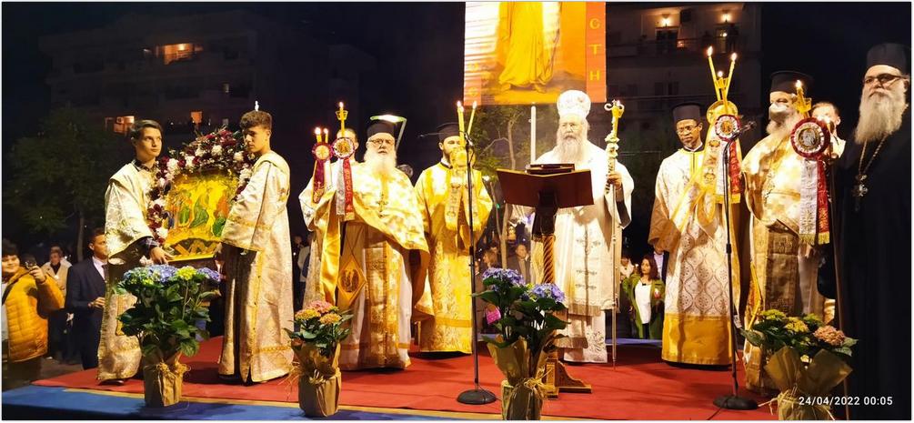 Κατερίνη: Στην πλατεία «Μακεδονίας» η τελετή της Αναστάσεως Παρουσία πλήθους πιστών, μετά από δύο χρόνια, η τελετή της Αναστάσεως του κυρίου στην Κατερίνη, χοροστατούντος του