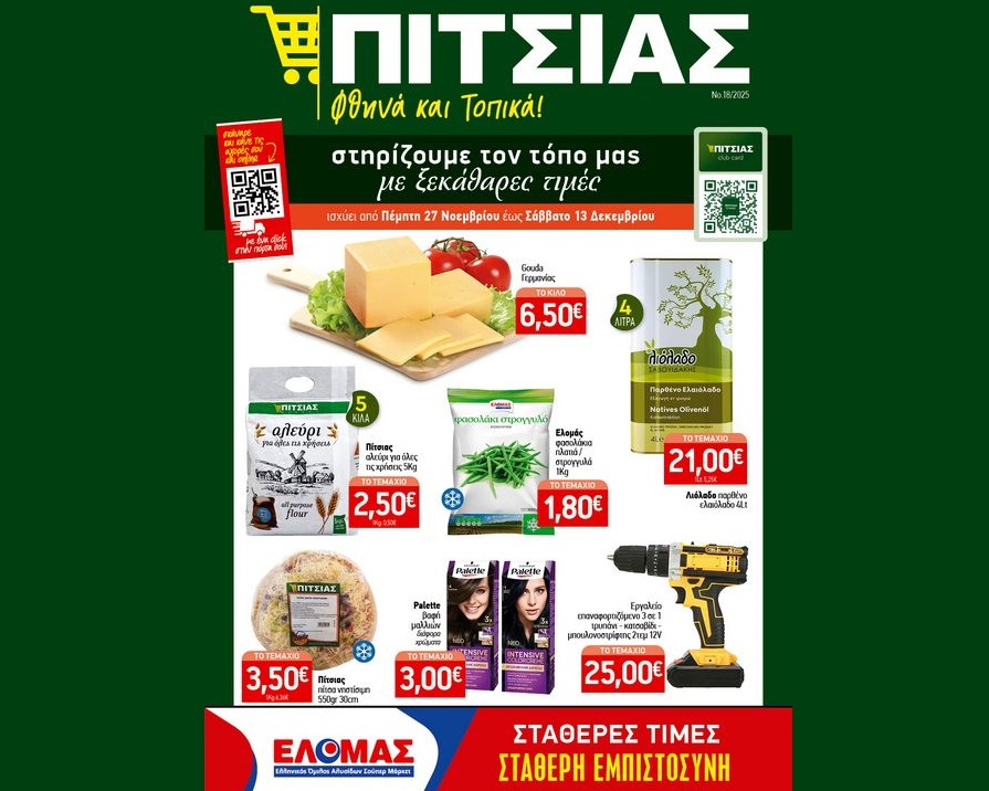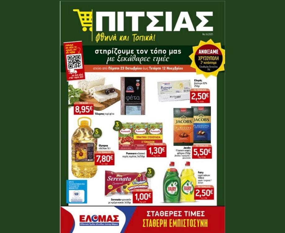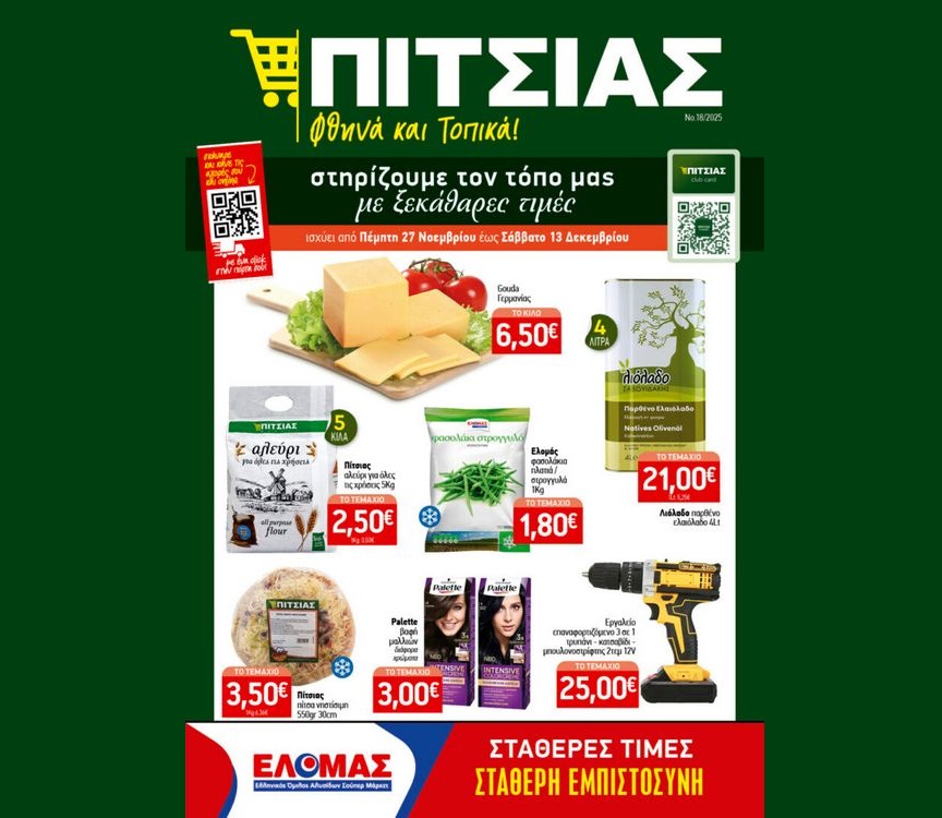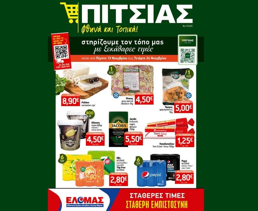 Απολαύστε τις φθινοπωρινές τιμές του νέου φυλλαδίου ΠΙΤΣΙΑΣ ΜΑΡΚΕΤ έως και 13 Δεκεμβρίου. Και στο https://pitsias.eu/filladia/ Ξεκάθαρες τιμές – Σταθερή εμπιστοσύνη.