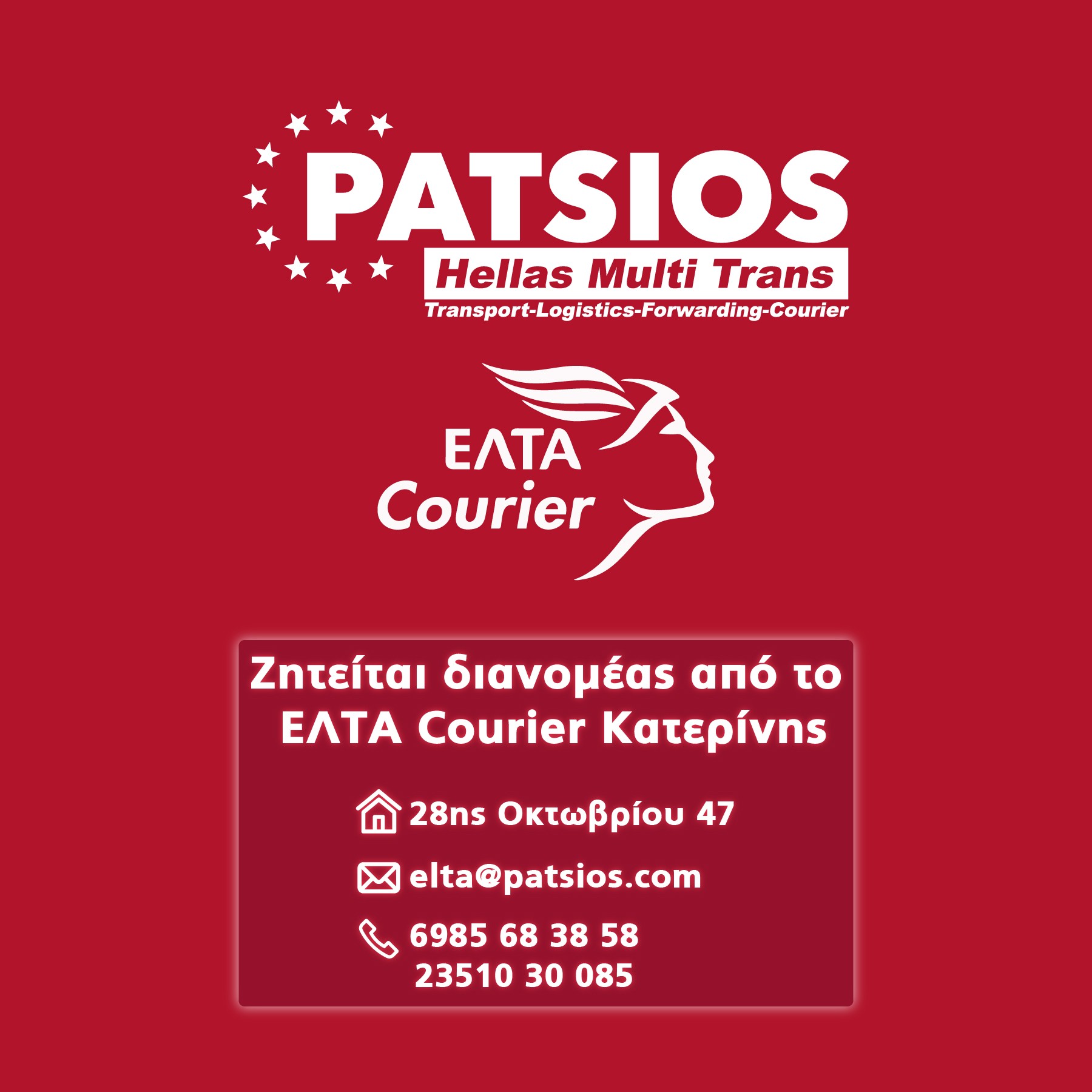 Η PATSΙOS Hellas Multi Trans, επίσημος συνεργάτης της ELTA Courier, αναζητά διανομέα για το κατάστημα ELTA Courier Κατερίνης. Στοιχεία Επικοινωνίας:📍 Διεύθυνση: 28ης Οκτωβρίου 47, Κατερίνη📧