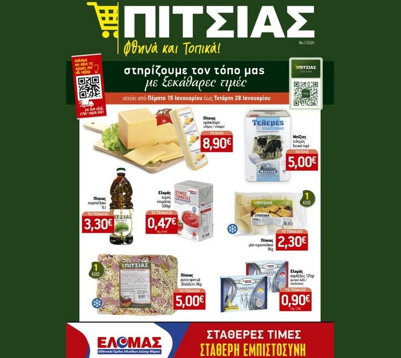 Νέο φυλλάδιο ΠΙΤΣΙΑΣ ΜΑΡΚΕΤ από 15/01 έως & 28/01. Και στο www.pitsias.eu.
