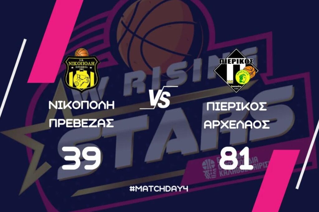 Ο Πιερικός Αρχέλαος επικράτησε με 81-39 της Νικόπολης Πρέβεζας, στο Κλειστό Γυμναστήριο Επταπυργίου, σε αγώνα για την 4η αγωνιστική του W Rising Stars.